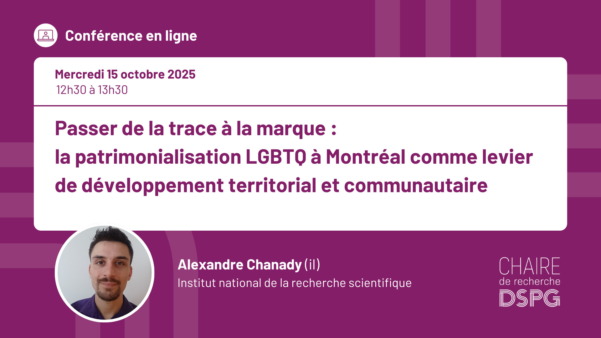 Par Alexandre Chanady (il), candidat au doctorat en études urbaines à l’Institut national de la recherche scientifique. Ses intérêts de recherche combinent les études sur le patrimoine, le développement des territoires et les géographies LGBTQ, qu’il combine dans le cadre de sa recherche doctorale.