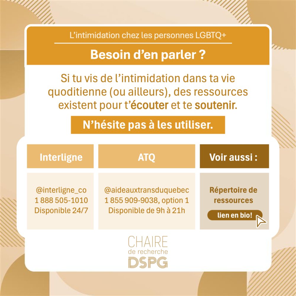 L’intimidation vécue par les personnes LGBTQ+ au Québec : Activités quotidiennes