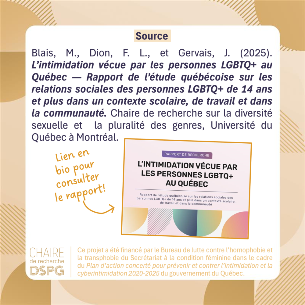 Cette infographie a été publiée sur les pages Facebook, Instagram et LinkedIn de la Chaire de recherche sur la diversité sexuelle et la pluralité des genres le 11 mars 2026.